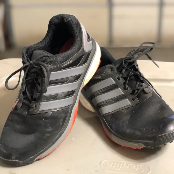 Comfy pair of Adidas golf shoes, wore them a handful of times. They are in good shape and lots of good rounds left in them.