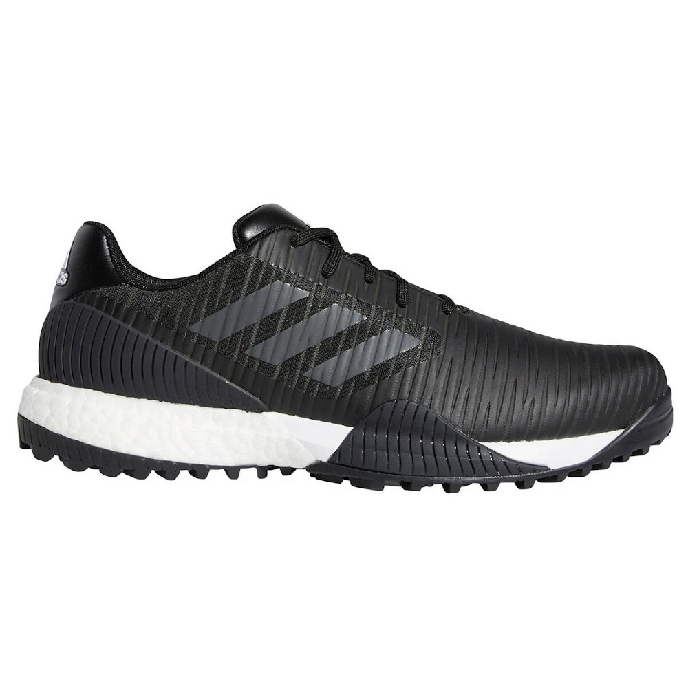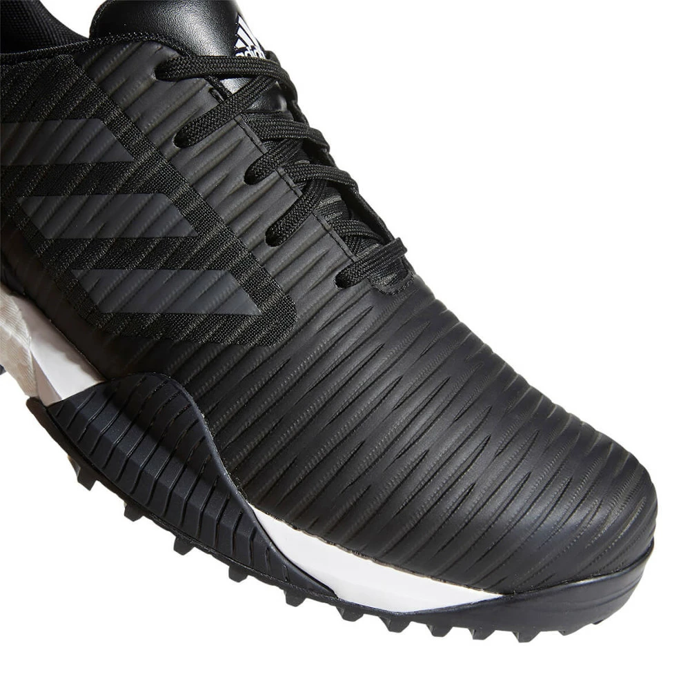 Read the approach. Focus on accuracy. Inspire your game with the forward-looking design of these spikeless adidas shoes. The CodeChaos Sport steps out of the traditional golf-style box and into the future, ensuring lightweight breathable comfort and fresh energy for every swing.